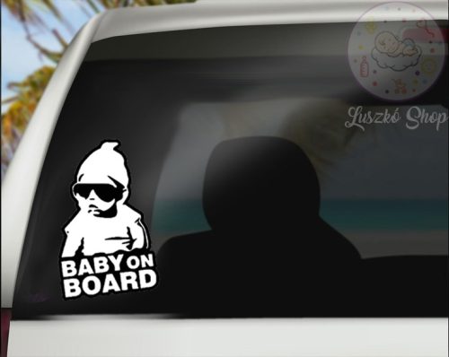 baby on the board matrica a hátsó autóablakra. Fehér színű.